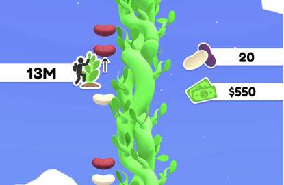 Beanstalk Grow是一款种植游戏,你在村子的中央种植了一株豆子,它在源源不断的长大,现在豆茎上方的豆子已经成熟了,而玩家在游戏中的任务就是不断攀爬,将这些豆子收集起来。