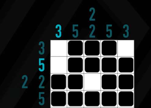 行和列上的数字线索表示每个行或列中有多少个黑色正方形。