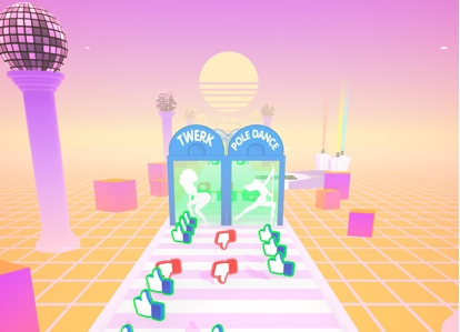 游戏的舞台赛道上有很多的奖励和评委的认可,玩家需要操纵游戏中的主角进行收集这些认可。这里还有很多的大门阻碍着玩家的前进,玩家需要选择合适的门进行闯关。