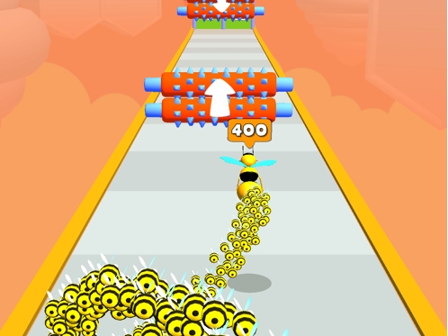 在Wasp Runner游戏中你要操控着一群蜜蜂进行跑酷,要注意前方会出现许多机关以及阻碍,你要灵活的躲避。并且还要在过程中不断增加蜜蜂群的数量,向着终点前进吧!