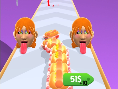 赛道上有很多饥饿的人,他们想要夺走玩家手中的吃的,在闯关时要小心闪避。同时还有很多的道具,玩家将这些道具收集起来还能获得更多加成buff。