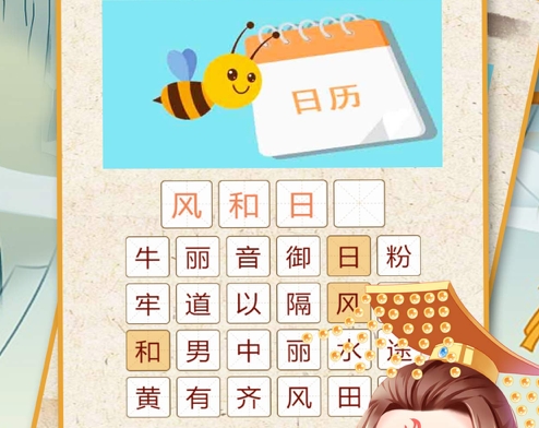 在游戏中根据给出的文字组成成语,当把所有的字都消除后,就算成功。