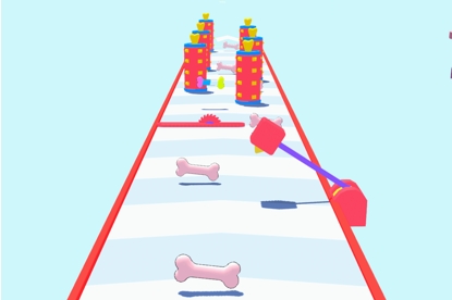 在游戏中有很多的障碍物,比如锯刀,如果用户不小心碰到了这些锯刀,狗的长度就会剪短。在游戏中还有很多的赛道,玩家在行进时小心不要掉下去。