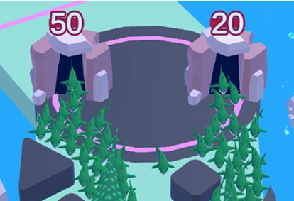 你的鲨鱼通过大门吞噬成群结队的敌方鲨鱼。