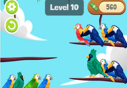 鸟类分类谜题:分类游戏是一款非常有趣的分类解谜游戏,在游戏中有各种颜色的鸟,玩家在关卡中需要点击小鸟改变它的站位,当相同颜色的小鸟排列在同一个枝条上,你就可以获取对应的积分了。