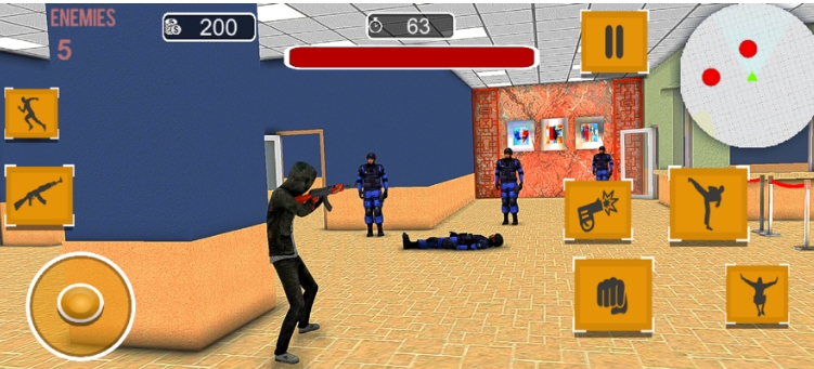 在这个银行抢劫游戏中,有许多离线银行射击挑战。
