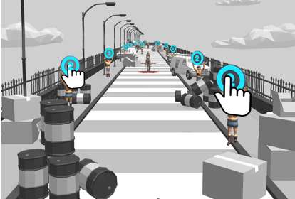 在闯关时,对面的敌人也会不断射击你,玩家再向前的路上也要小心观察,闪避这些障碍物。同时还有很多的射击点等待玩家收集,玩家利用这些射击点,可以获得更多的射击技能。