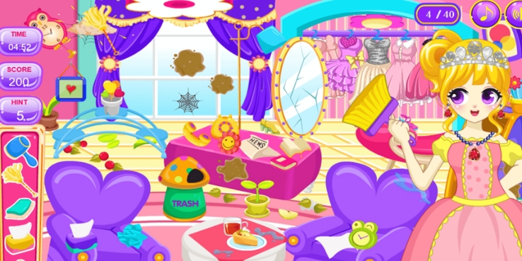 看看打扫公主的房间,你能以多快的速度赶时间。如果你被卡住了,你可以使用多达5个提示来检查,如果你不确定的话,看看什么东西去了哪里。