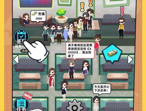 游戏为玩家呈现了卡通Q版的画风,能够增添游戏乐趣。在这里你要充分利用自己的商业头脑,想方设法的将ktv经营的更好,吸引更多的顾客前来光顾才可获得更多的收益。