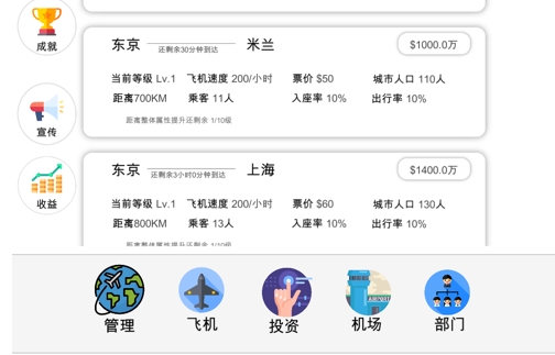 大家都坐过飞机,有没有想过一家航空公司要怎样经营呢?航空大亨:模拟经营放置休闲这款游戏中将为玩家提供一个经营的机会,玩家在这里可以根据自己的喜好来建设这家公司。