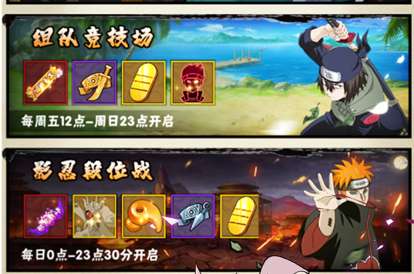 【忍界大战】跨服竞技群雄争锋,天梯经济,组队争霸,段位站,跨服至尊,多种玩法,丰厚奖励奖励。限定称号, 珍惜须弥九尾等你来领。