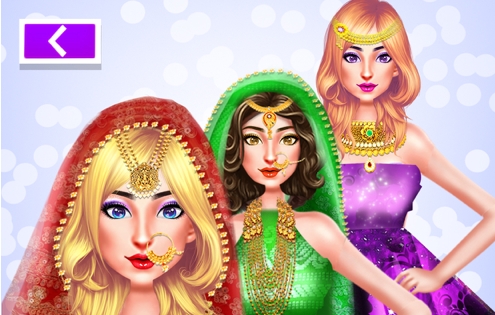 通过在化妆游戏中的时尚水疗中心使用优雅和花哨的印度礼服、纱丽、皱眉和其他闪亮配饰为新娘打扮,并为时尚造型师新的印度婚礼游戏打扮。