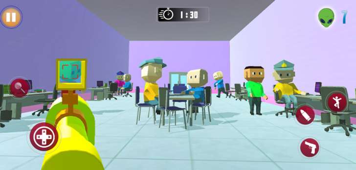 你喜欢射击游戏吗?喜欢的话不妨来Find the Scary Haunted Alien这款游戏看一下。这是一款第一人称的射击游戏,玩家需要在关卡行走中的人中找到外星人,然后击杀对方,你就能获得游戏的胜利。