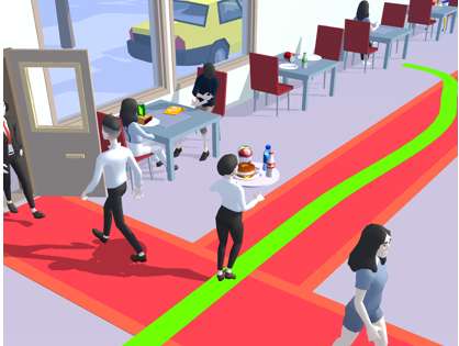 你是Waiter Rush 3D这款游戏中的一名普通服务员,在游戏中,你的任务就是给顾客送餐,满足他的各种要求。而餐厅中有来来往往的人员,小伙伴在闯关时要注意,千万不要撞到别的人。