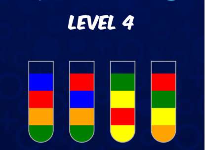 通过玩不同的颜色和管来完成游戏的每个阶段。