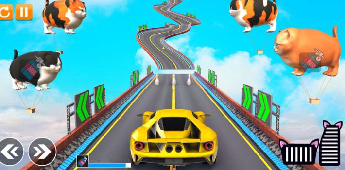 猫咪汽车特技游戏是为了让你享受宠物猫的新特技,它将与超级跑车进行特技挑战。