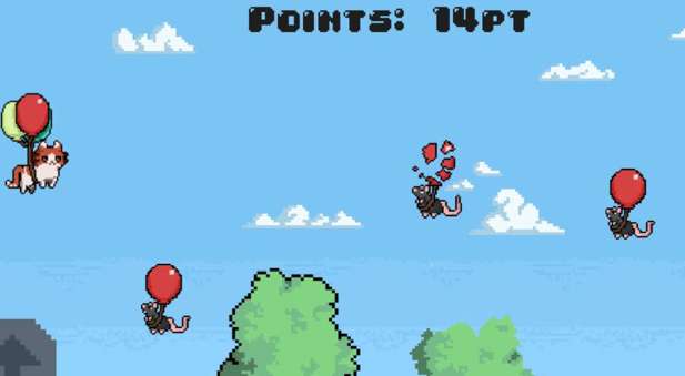 pixel art的街机风格游戏你是一只超级可爱的猫,通过一些气球操控游戏设计和娱乐性游戏,