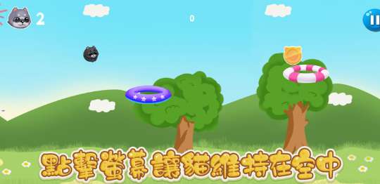 可爱的小猫猫不断在游戏中跳跃,如果你喜欢猫猫的话,就来我的穿越圈这款游戏帮帮它吧。在这款游戏中有很多的圆圈,玩家在玩耍时可以不断点击跳跃,然后顺利跳跃到游戏的终点即可获得游戏的胜利。