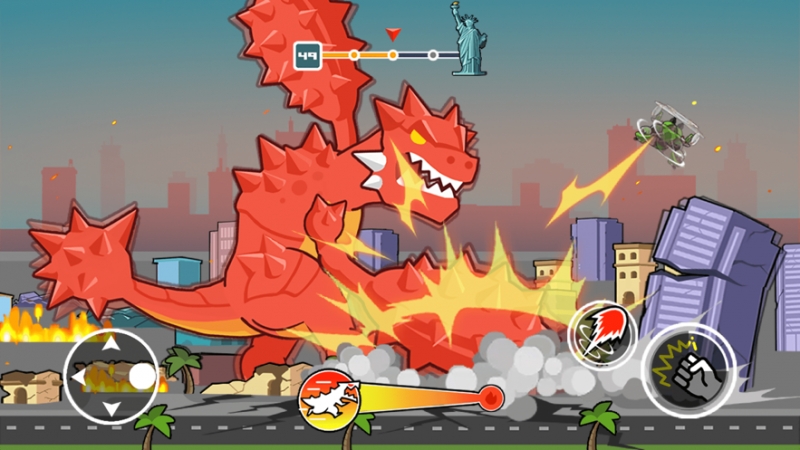 在怪兽暴击游戏中你可以操控着自己的怪兽在外星人的城市中尽情的破坏,但要注意外星人也会围攻你并对你进行攻击。你可以攒满怪兽的怒气值并释放出更强大的力量,从而进行快速的破坏。