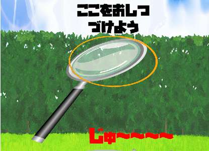 もやせ!むしめがねパワー!是一款奇特的挑战游戏,在游戏中有一个放大镜,当用户将放大镜放置在阳光下,就能汇聚起火光,用户需要用这些火光来点燃篝火,试试看吧,你能完成多少点燃挑战。