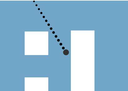 玩家将沿着路径反射方向撞击反射物体或障碍物。