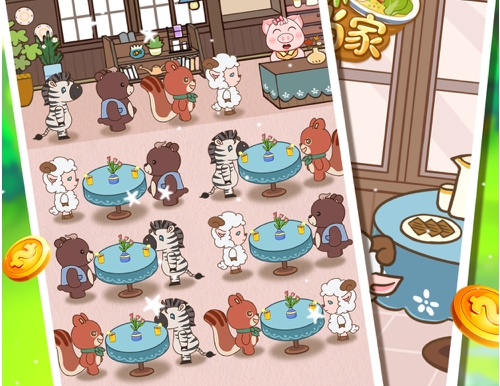 1、你可以雇佣可爱的动物员工为你工作,迎接食客进店,并点击他们获得收益!