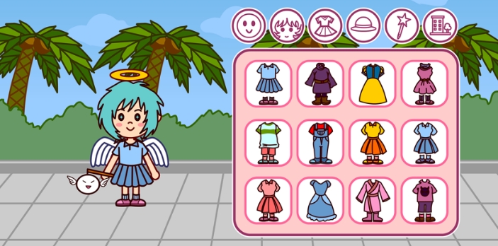 喜欢装扮游戏和设计的小伙伴看过来,换装游戏中的这个小天使在等待玩家来装扮她。这里有很多的服饰可以挑选,玩家可以根据小天使的长相和风格进行配置,在这里还有很多的背景图,玩家可以根据自己的喜好更改背景图。
