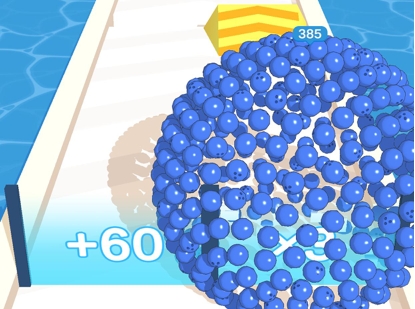 在赛道上有很多的障碍物,玩家可以避开这些障碍物,如果被障碍物碰到,小球的数目就会减少。还有很多的门,玩家通过这些门,还能获得更多的小球。