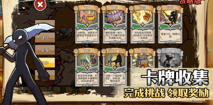 《火柴人战争战略版》是一款风格独特的火柴人卡牌类塔防游戏,玩家将扮演一个火柴人部落的领导者。