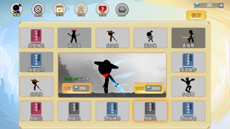 3、武林大会即将召开,化身火柴人的你为了一举夺魁,加大了自己的训练量。