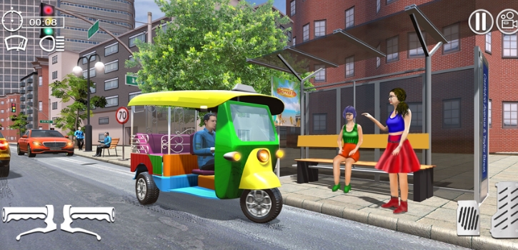 城市中的居民等待着前往各式各样的地方,玩家在Tuk Tuk Auto Rickshaw 3D Sim这里将会扮演嘟嘟车的司机,你将会驾驶自己的车辆,选择乘客后,将他送到自己想要前往的地方。