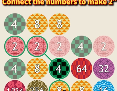 Ninobeki 2048 Block Puzzle用奇妙的花纹构建了一个趣味的拼接益智游戏。游戏上方的画面中会随机落下一个圆环,这个圆环上有数字,玩家需要将它放置在有相同数字的上方,这样二者就能进行合并。
