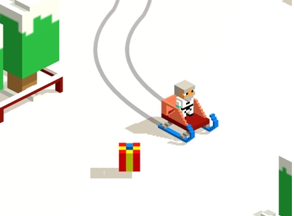躲避两边的墙壁和道路上的障碍,比赛看谁滑的最远收集礼物最多。