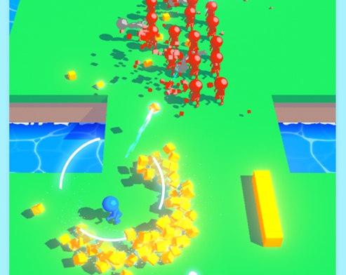 1、手指控制角色移动,靠近小方块、子弹等道具可以自动吸附,围绕你的道具可以自动射向靠近的敌人。