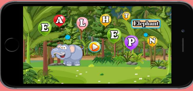 -拼写:屏幕上显示一张图片,上面有字母。孩子们从下面的瓷砖中选择字母,按照正确的顺序拼写单词,以匹配顶部的字母。