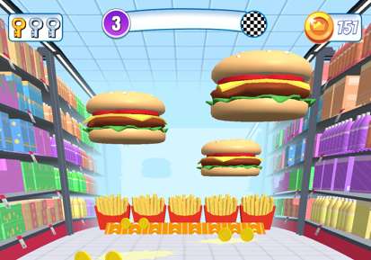 在游戏的前方有很多的高热量食物在阻碍着玩家前行,玩家需要带领自己手中的水果小心闪避过这些水果,当你顺利获得游戏的胜利后,你就能获得更多的道具和战力技能。