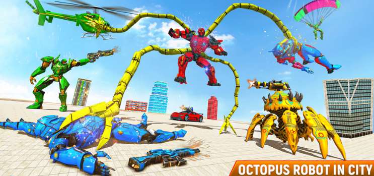 喜欢汽车驾驶游戏的小伙伴们看过来,在章鱼机器人汽车游戏3D这里有很多的冒险等待玩家参与,利用这些冒险,玩家可以享受十足的驾驶乐趣。在游戏中还有很多的道具,你可以利用道具进行自我升级。