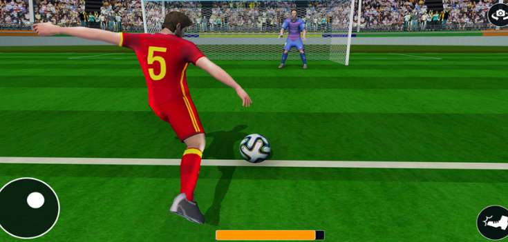 在离线足球比赛中通过点球和漂亮的射门得分。