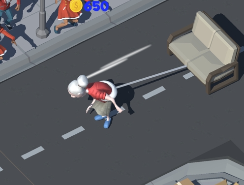 2、超级魔性的游戏玩法,操作老奶奶不断前进;