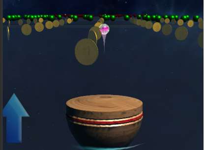 在游戏中有两个箭头,玩家点击箭头可以移动陀螺旋转的方向。在游戏中还有很多的硬币,玩家在进行闯关可以收集这些硬币,收集的硬币数越多,可以获得的积分奖励就越多。