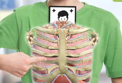 AR模式:通过固定特殊标签卡的颈部和腰部高度,你可以看到内部器官被投射出来,